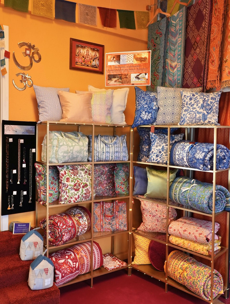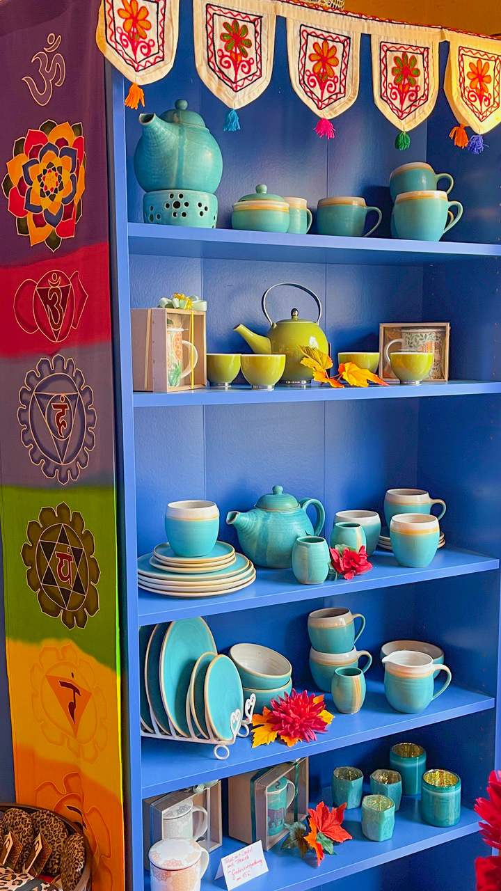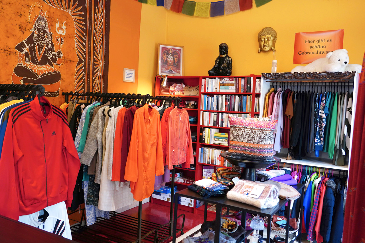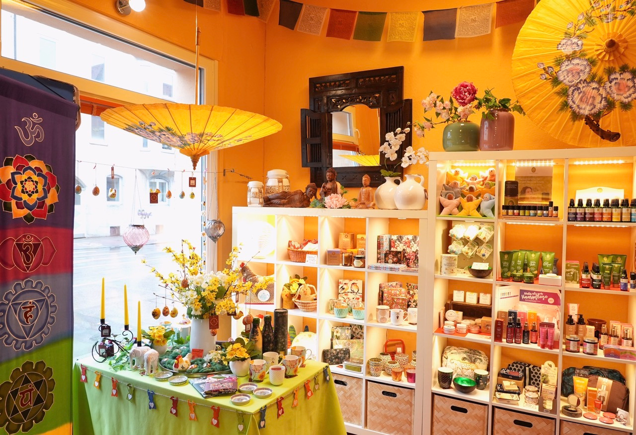 Hier gibt es schöne Auswahl guter Yogamatten, Yogakleidung, Meditationskissen, Klangschalen aus Nepal, feinste Räucherstäbchen, Yogi Tee, biologische Süßigkeiten, einzigartige Geschenke und einen sehr schönen Secondhandbereich mit gut erhaltener Ware: Kleidung, Bücher, DVDs und CDs für Kinder und Erwachsene.