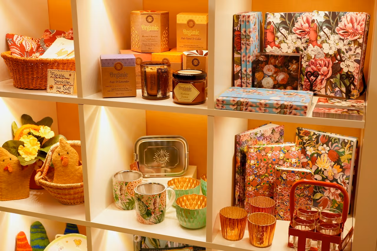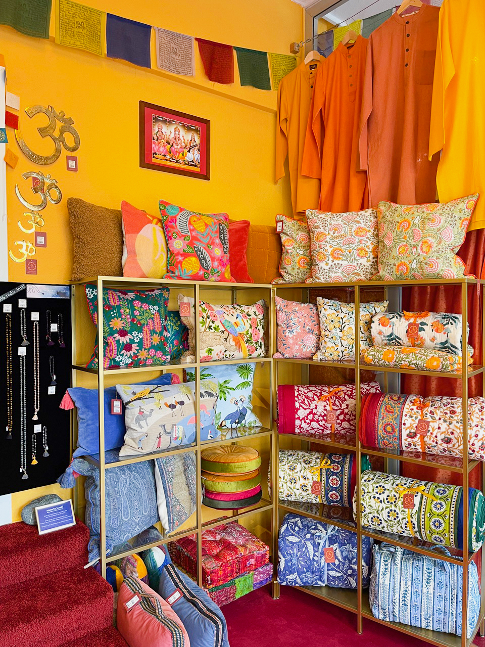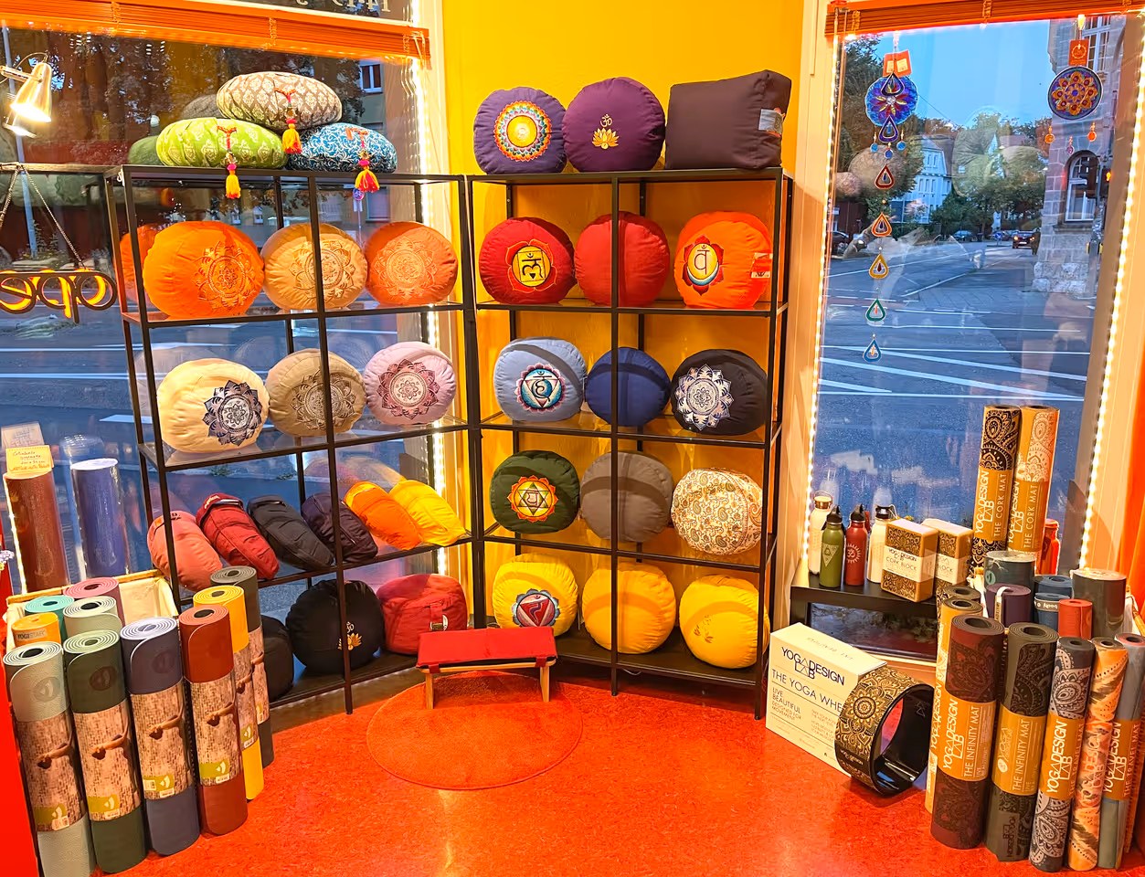 Hier gibt es schöne Auswahl guter Yogamatten, Yogakleidung, Meditationskissen, Klangschalen aus Nepal, feinste Räucherstäbchen, Yogi Tee, biologische Süßigkeiten, einzigartige Geschenke und einen sehr schönen Secondhandbereich mit gut erhaltener Ware: Kleidung, Bücher, DVDs und CDs für Kinder und Erwachsene.