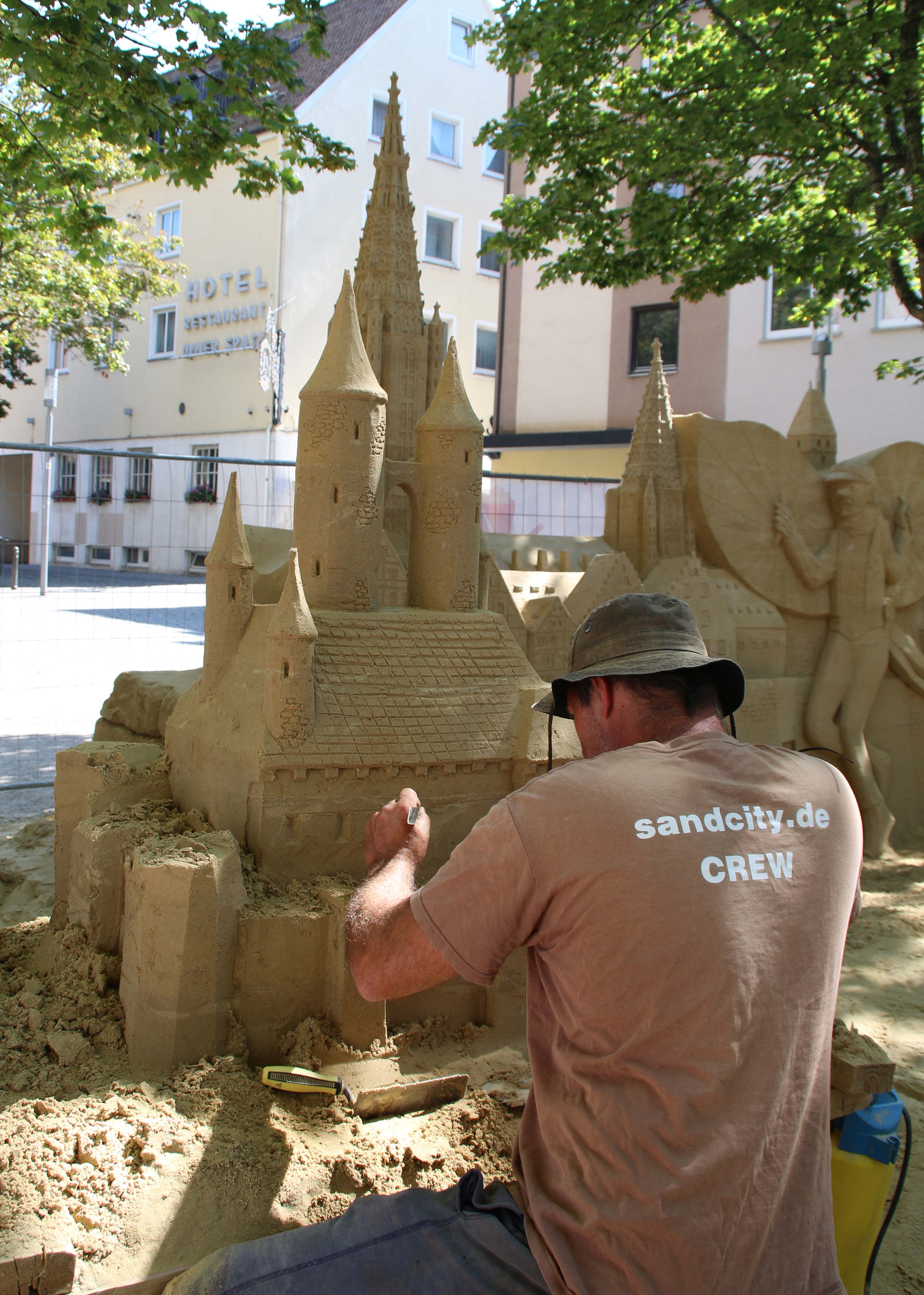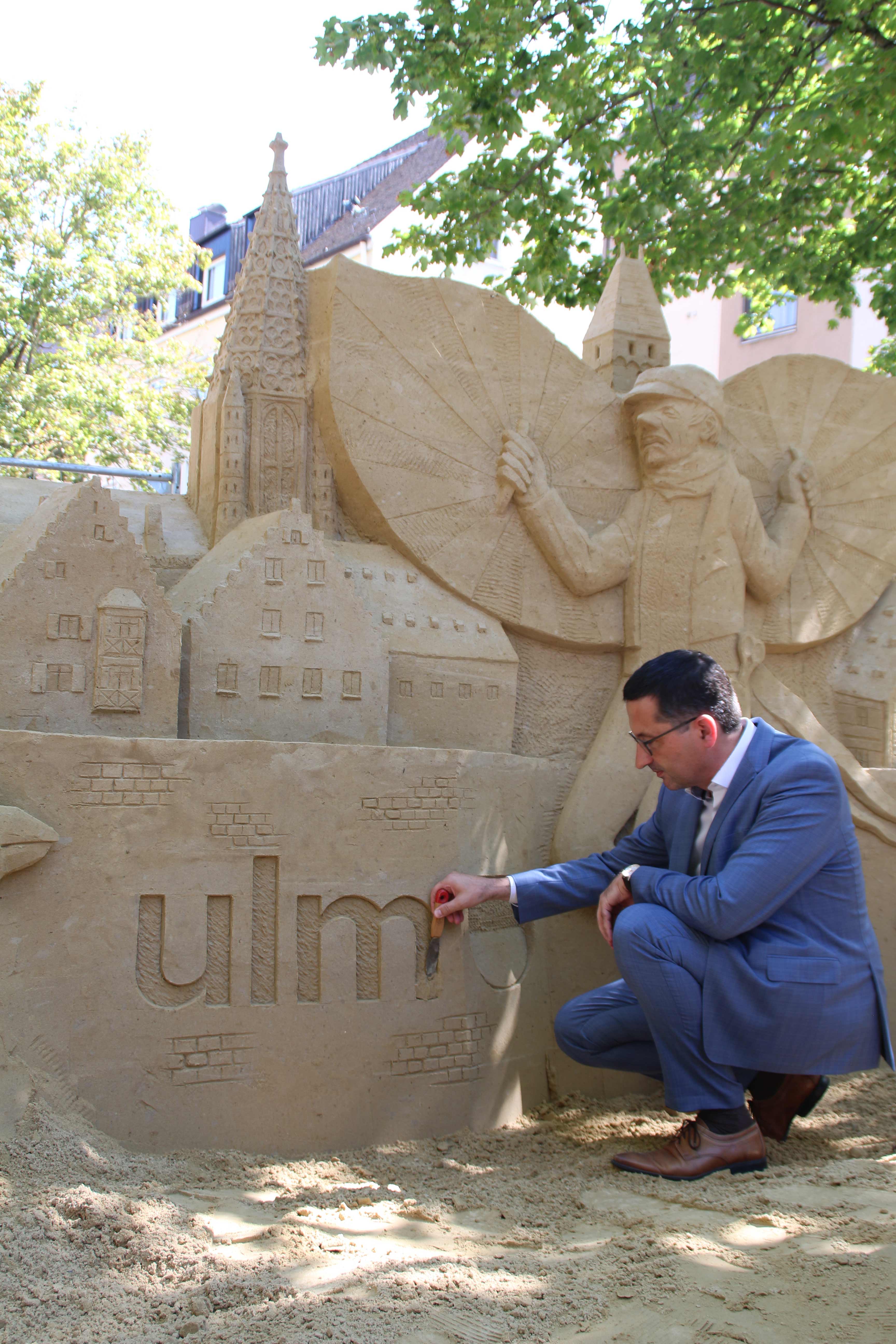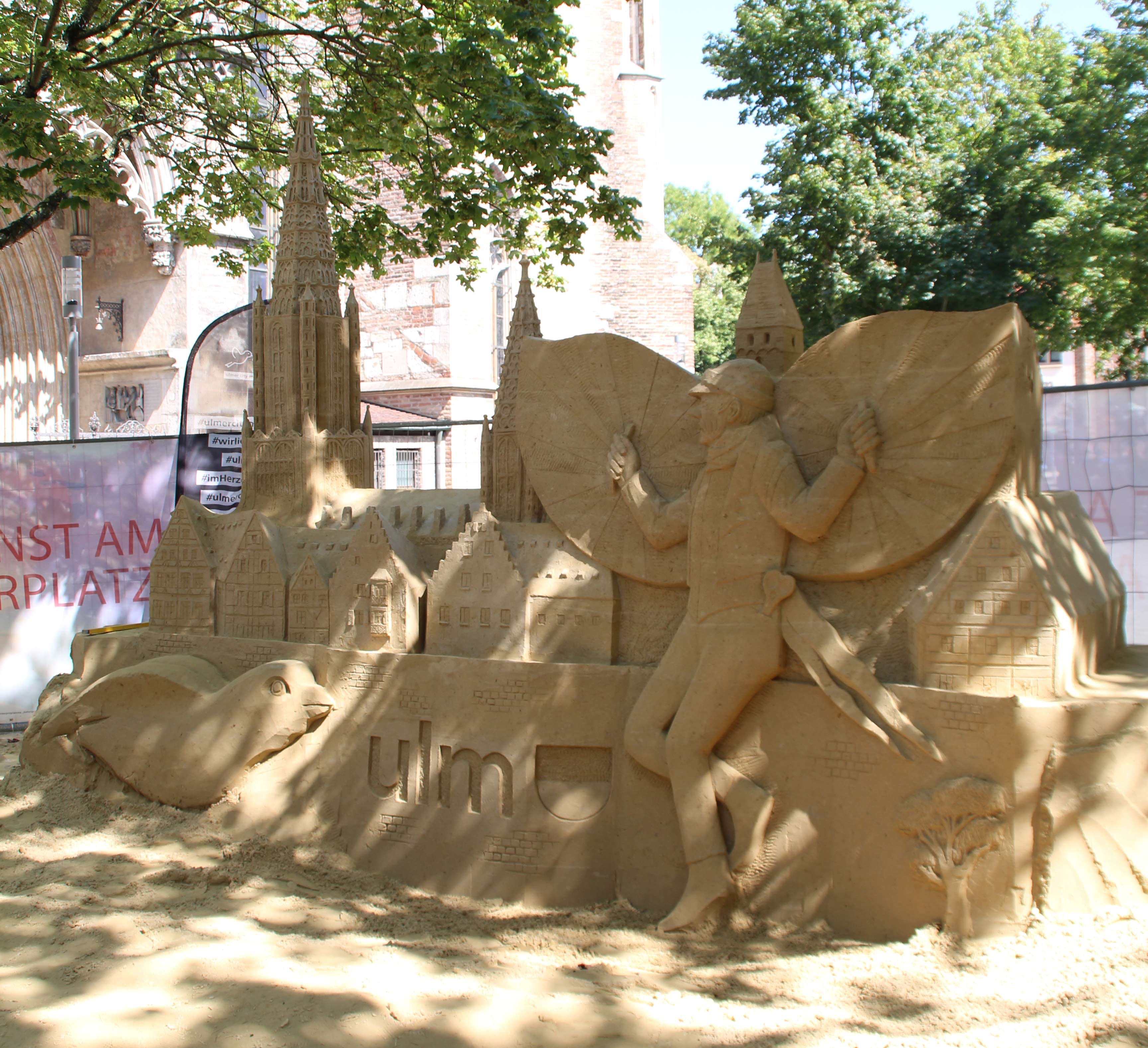 Vom 23. August bis zum 03. September verwandelte sich der südliche Münsterplatz in einen riesigen Sandkasten, der nicht nur die Kinder dazu einlud, Sandburgen zu erschaffen. Die Sandskulpturen-Künstler Benno Lindl und Jan Zelinka bauten mit speziellem Sand eine Skulptur aus Sand mit den Wahrzeichen Ulms. So sind innerhalb von sieben Tagen das Ulmer Münster, der Schneider von Ulm und weitere „ulmische“ Formen aus Sand zu bestaunen gewesen.
